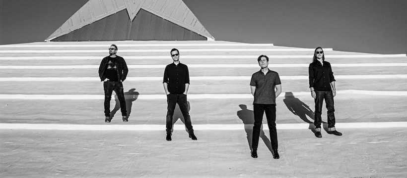 In 2010, Jimmy Eat World issued their seventh album, Invented (Dine Alone), which saw the return of Trombino as producer. This release marked the first instance since their self-titled debut with original vocalist Linton taking over primary vocal duty (on “Action Needs an Audience”). Singer/songwriter Courtney Marie Andrews provided backing vocals for a handful of tracks on Invented and joined the band on tour. Damage (RCA Records) arrived in 2013, this time with Alain Johannes (Queens of the Stone Age, No Doubt) at the helm. The next year, the group took to the road once again to celebrate another milestone: the ten-year anniversary of Futures.